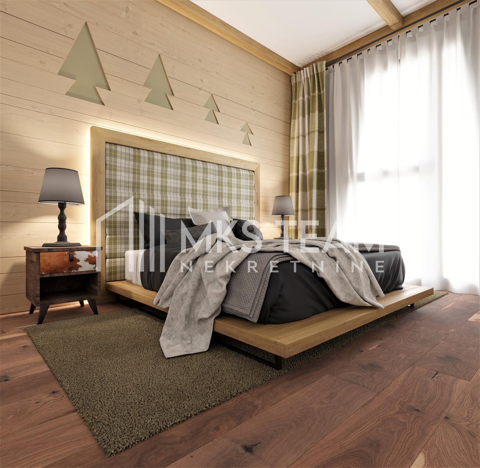 Svaki apartman dizajniran je s naglaskom na moderni životni stil, s prostranim interijerima, velikim prozorima koji pružaju panoramski pogled na planinske vrhove, te visokokvalitetnim materijalima i opremom. Uživajte u miru i tišini prirode, dok vam u isto vrijeme treba samo kratka vožnja do svih pogodnosti grada.